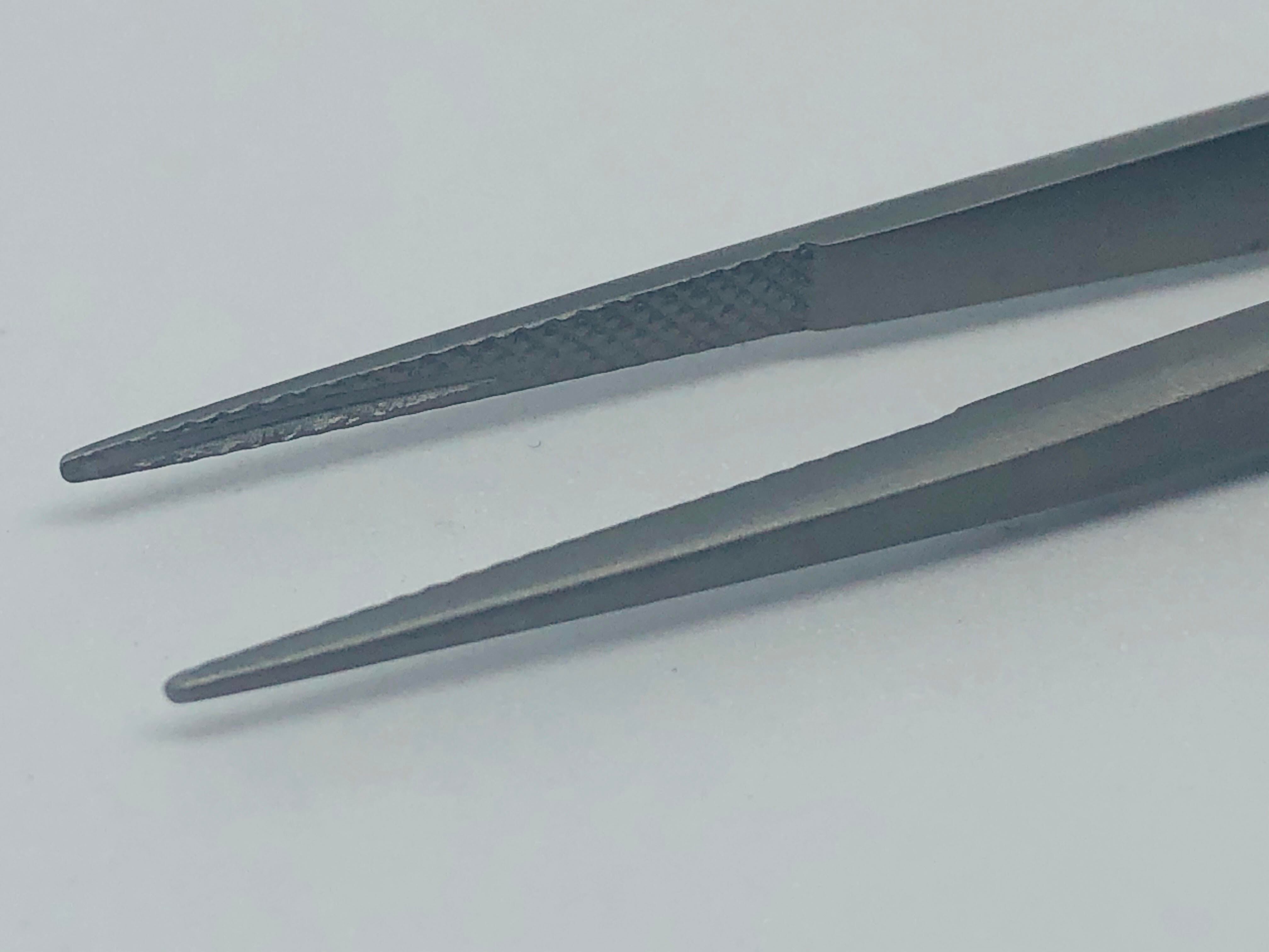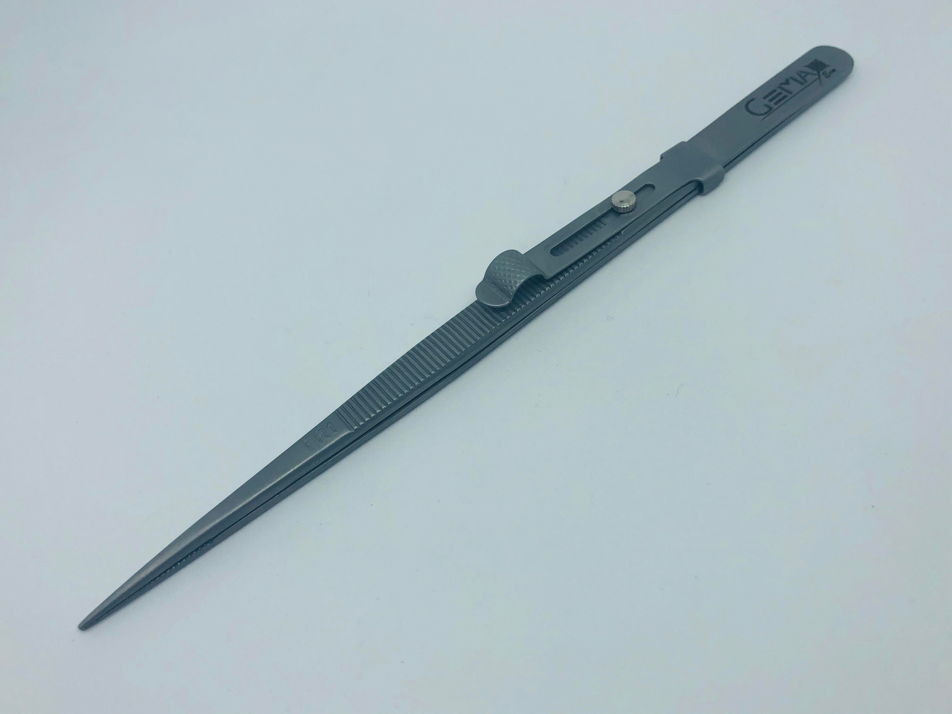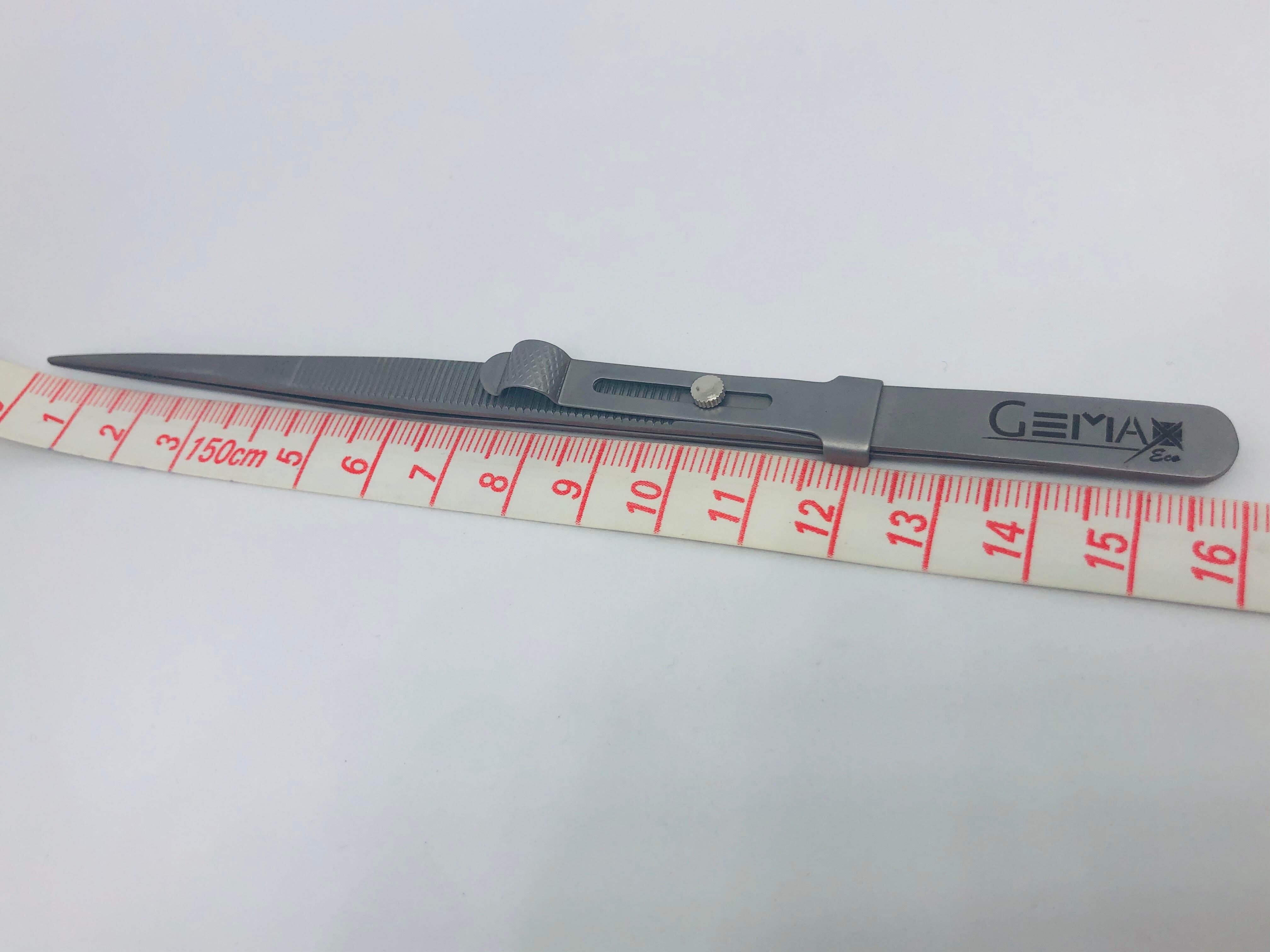 宝石(ルース)用の精密ピンセットです。ルースを扱う時に使用するピンセットでストッパー付きの為ルースを挟んで固定できます。固定できるのでルーペで鑑賞する際など容易になります。